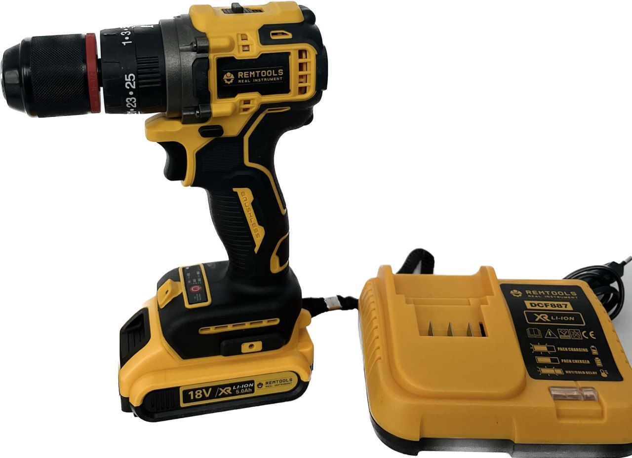 Дрель-шуруповерт аккумуляторная Remtools RCD18FU , 18В, 50Нм, 2xLi-ion