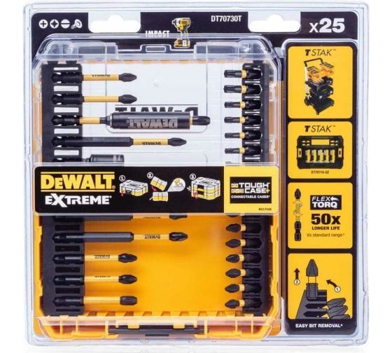 Каталог Набор бит и насадок FLEXTORQ 25 предметов DEWALT DT70730T-QZ