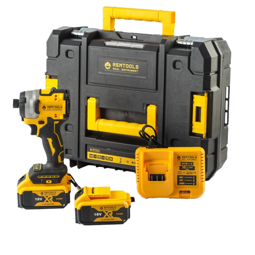 Набор включает в себя шуруповерт Remtools DCF850 18V, который оснащен мощным 18-вольтным аккумулятором и имеет высокую мощность вращения - 200 Нм. Благодаря этому, вы сможете легко и быстро завинчивать шурупы и выполнять другие строительные работы.
