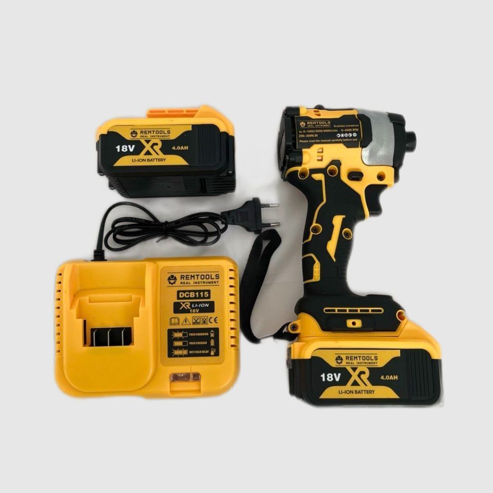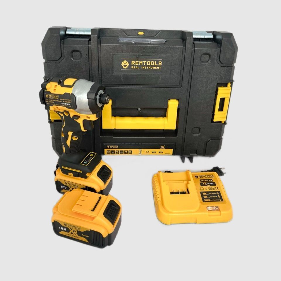 Наш ударный шуруповерт Remtools 18V- это инструмент, который обеспечивает быстрое и эффективное затягивание винтов в твердые материалы, такие как дерево, металл и бетон.